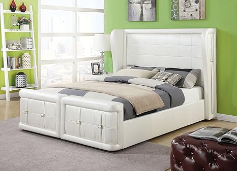 Amazon Com Acme Linus Pearl White Faux Leather Queen Bed